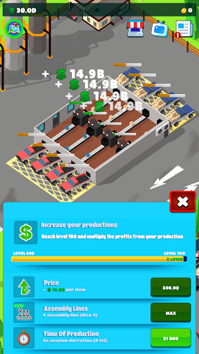 You will start with your first small factory producing a basic product. With your skills and knowledge of how to manage manufacturing factories, you can take these businesses to new heights. You will have to manage your finances, invest the earned money to constantly develop and rise in the rankings. As your businesses grow, you'll earn money even when you're away from the game, allowing you to improve and expand your business. This feature is perfect for busy industry tycoon who want to make progress in the empire but don't have time to be on the job all the time. Good management and investments will give you unlimited opportunities for growth and profits. You'll be able to see your factories bustle and your profits soar to new heights.