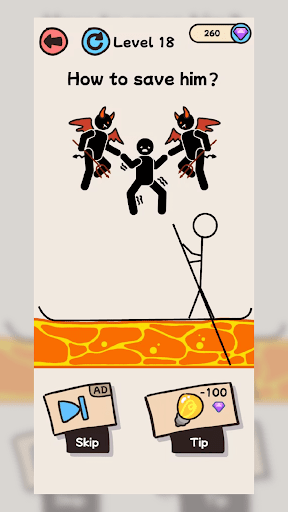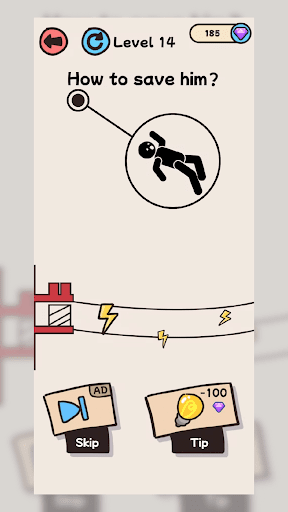 Here is a stickman who needs your help! Use your ingenuity, slide the screen, and create lines to protect the stickman from harm. After each pass, you can get diamond rewards
