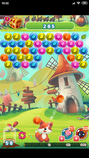Em Bubble Shooter você tem que combinar a mesma cor com um mínimo de 3 pares de cores iguais, você pode fazer bons combos, enquanto mais bolas da mesma cor combinam maior será a pontuação, você pode subir níveis aumentando a dificuldade.