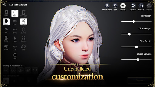 Make your very own Traha by customizing your character’s body type, facial proportions, skin, and more!