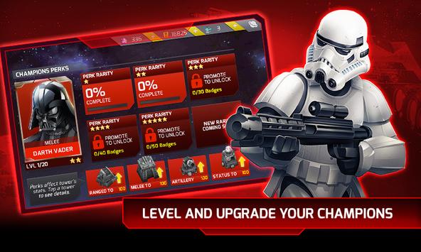 You must creatively coordinate your defenses and utilize powerful champions, including Luke Skywalker and Darth Vader, to devastate waves of enemy attacks as you fight both light and dark side battles. The placement and execution of these defenses are do-or-die decisions in both single player mode and online social events where you can earn rewards with rare bonuses.
