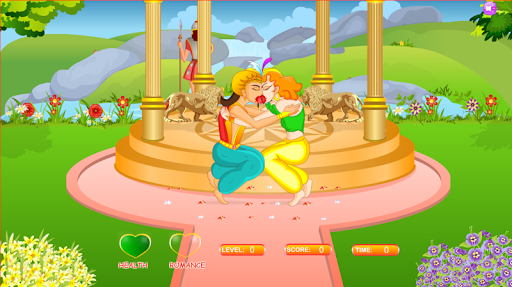 Make the prince and princess kissing each other for the long time as long as possible to fill the romance meter to show their true love for each other without getting caught by others in the Garden, bedroom, chamber, palace..etc