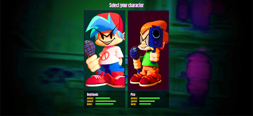 Choose Boyfriend or Pico and start to fight against enemies and during the battle you will be able to listen to friday night funkin all songs,