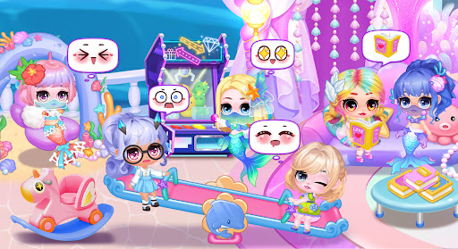 Welcome to this cute and mysterious world, where you'll find a multitude of chibi dolls with various styles, including cute little mermaids! Inside your dream castle, you can play with the dolls, explore the underwater world with the mermaids, and get lost in endless makeup and dress up fun! Come on! Exciting world exploration awaits you!