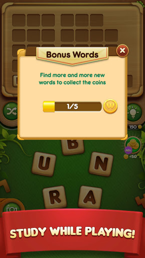 • Find as many words as possible to unlock levels and earn extra bonus coins.