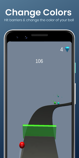 The more you play the faster the ball goes, and the track becomes more and more difficult in the color road. The game has smooth picture quality with a colorful design to soothe your eyes and gives aesthetic experience making your spent time better. Avoid all the obstacles you can with just those easy controls! How long can you survive?