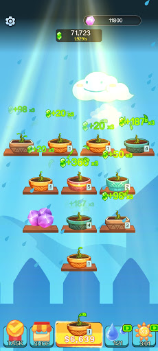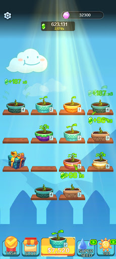 Money Garden is an idle game. Every once in a while every tree will automatically generate some money. The higher the level, the more money are generated