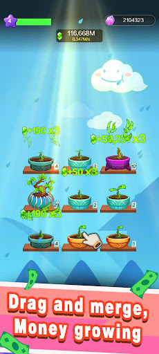 Money Tree is a simple idle game. Place some pots and grow trees. Drag and drop same level tree together to get better tree.