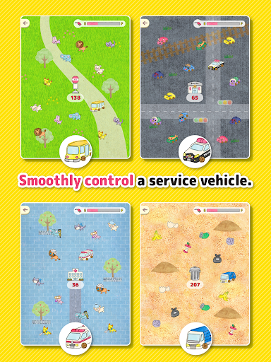 *Control four types of service vehicles (police car, bus, ambulance, and garbage truck) and chase moving targets.