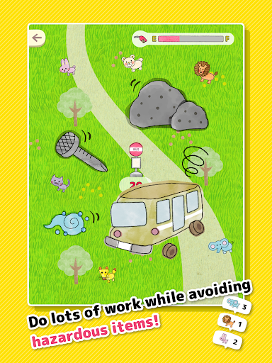 2. In the Bus stage, drive up to your animal friends to pick them up in your bus, then drop them off at the bus stop in the middle of the screen. Drive up to the bus stop and they'll get off.