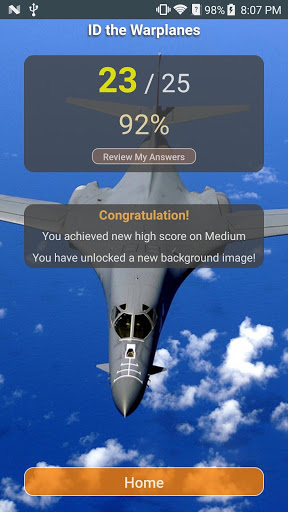 - 58 background images of warplanes can be unlocked with every 30 correct answers