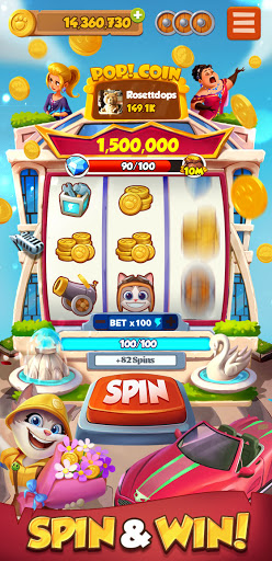 Welcome to POP! Coin! Spinning and winning the jackpot and build lands around the world! Join your family, best friends, and other players, spin to win, attack or raid to get coins, collect stars or items to the top!