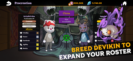 Devikins is a free to play blend of classic JRPG style turn-based combat and character breeding. Seek glory with a Guild or craft weapons, equipment, and skills! Raise your own personal army, and defeat monsters and other players in both PvE Story Mode and the PvP Arena!