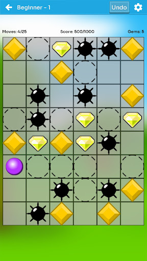 Inertia is a game about collecting all the gems while avoiding hitting the mines. Like the name suggests, your movement can only be stopped by a wall, a ring or in the worst case, a mine!