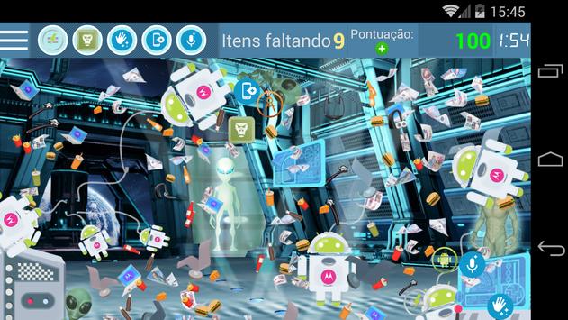 ¡Bienvenido a Objetos escondidos! El objetivo del juego es recoger todas las características ocultas del teléfono lo más rápido posible para armar tu nuevo Moto G, Busca en cada mundo acercando y alejando el zoom, deslizando la pantalla hacia los lados y girando el teléfono.Encuentra una característica oculta del teléfono y responde correctamente la pregunta para conservar la característica. Presta atención al robot dorado de Android, si lo encuentras, las características ocultas brillarán un instante para ayudarte a encontrarlas