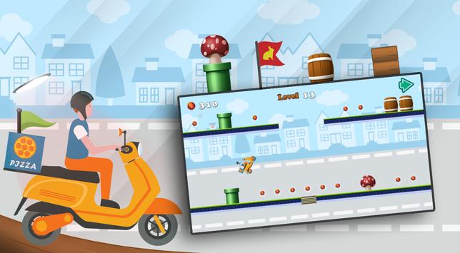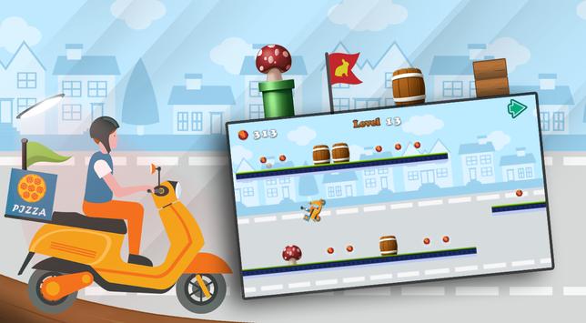 Drive for your life and escape all troubles and obstacles. Collect pizza, explore different areas and run along pizza, traps and barriers.