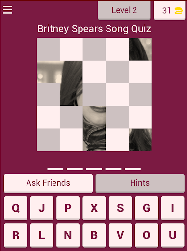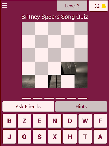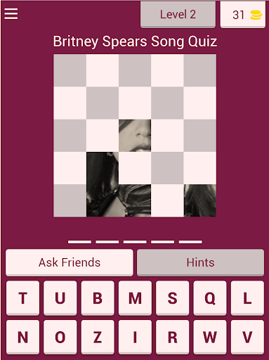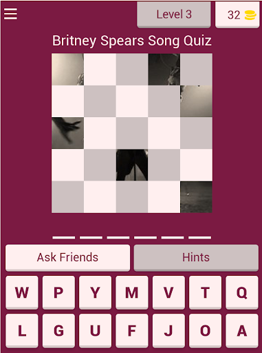 Test your skill, learn new songs, all while having a great time playing Britney Spears Song Quiz. Share the fun with your family & friends and enjoy it together!