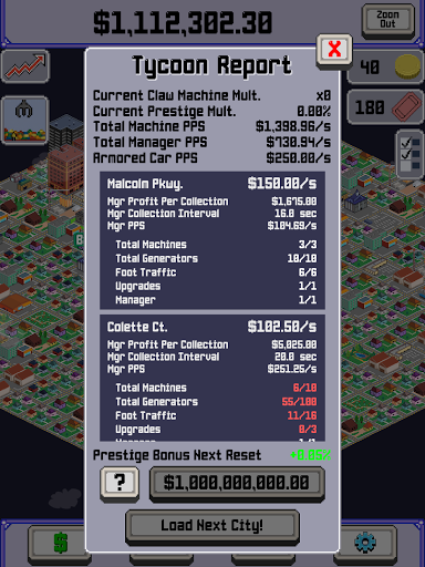 Buy your first machines, gain idle profit, and grow your business like a tycoon! Your idle arcades make money even when you're not playing! Build your idle arcade locations up to maximum occupancy and expand your tycoon business with more arcade locations! Expand into new cities as you become an Idle Arcade Tycoon!