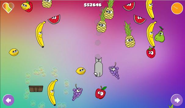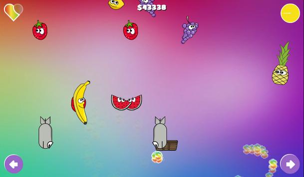 It's very challenging and practice reaction speed. Get the fruits by placing your basket them but what’s out for a falling nuke because you only have three lives. The game is simple enough but hard to master.