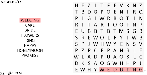 this app is for word search game . the game allows users to play and discover new words by drawing it into different shapes and to play word search game online
