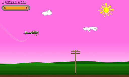 Fly through barns to earn big points and refill your gas tank. Collect up supply crates for small point bonuses and cool guns. Don't forget to shoot down birds and enemy missiles to get extra points! just don't run into them!