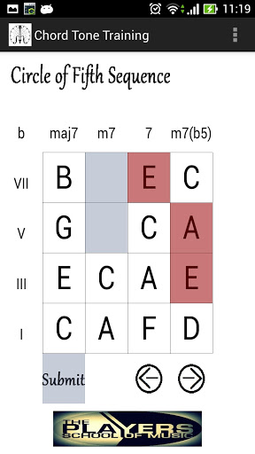 -By touching the grid title you can choose to move the grid (using the back and forth arrows) either randomly, chromatically or following the circle of fifths.