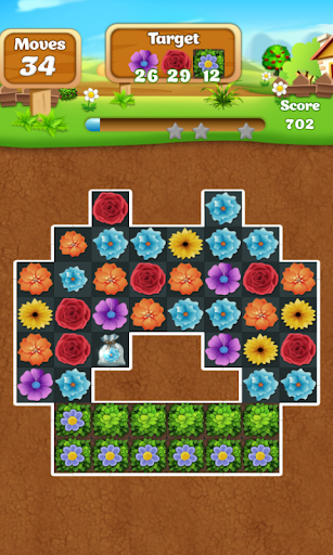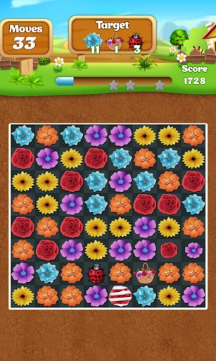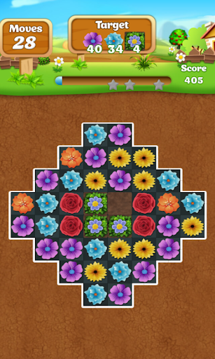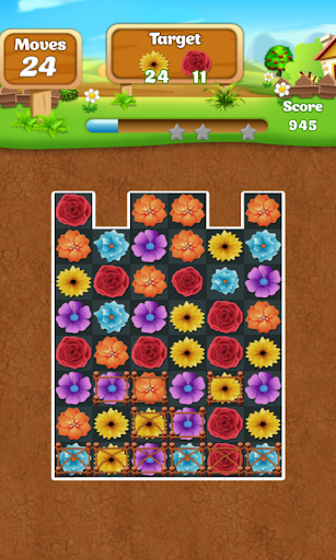 • Swipe flowers to make a row of three or more of the same flowers.