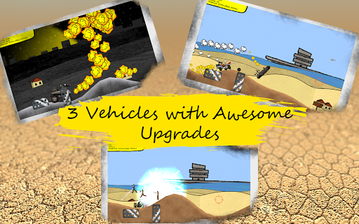 - 3 different vehicles with 9 upgrades per vehicle (Mini nukes, Tesla cannons, Rocket engines, the list goes on!)