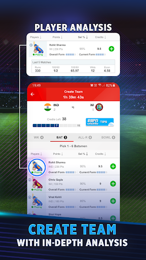 ✓ Create your fantasy cricket or football team – Pick 11 players to manage your fantasy team with a budget of 100 credit points