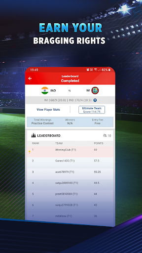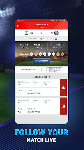 ✓ Monitor your team’s performance – On the basis of your chosen ones’ performance in the real match, you’d see your team points progressing.