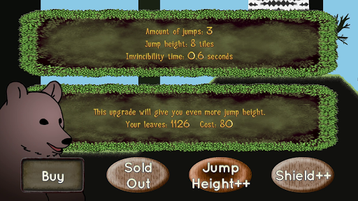 Trade your collected leaves with the Bear for upgrades, such as the Rabbit's Double Jump