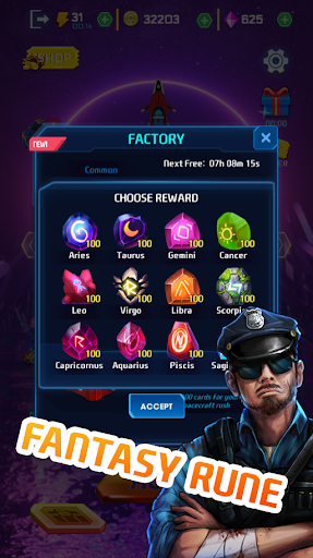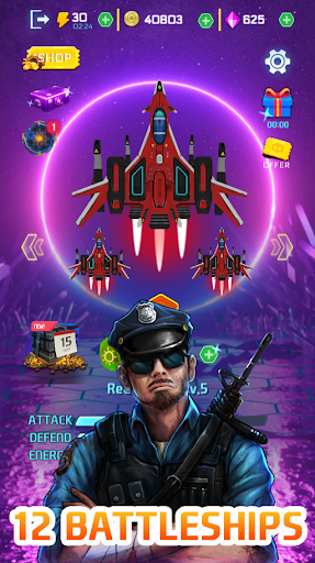 Galactic Battleship offers 12 different types of fighters. Each type of fighter has its own power. There is also an upgrade system, enhanced through energy stones dropped from each battle.