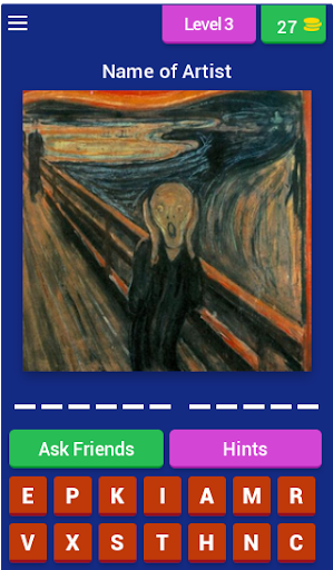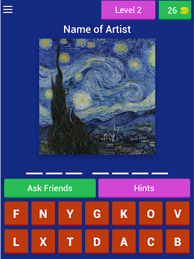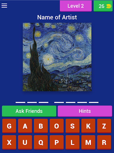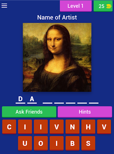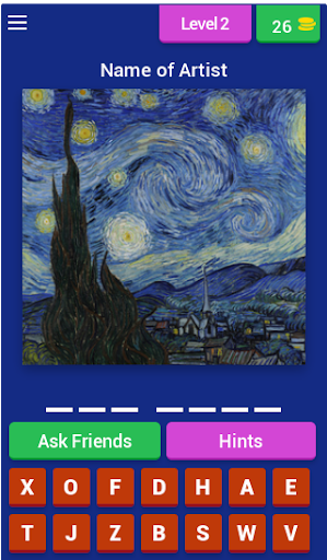 A challenging and educational Art Quiz Game (Painter Quiz) with 50 levels.