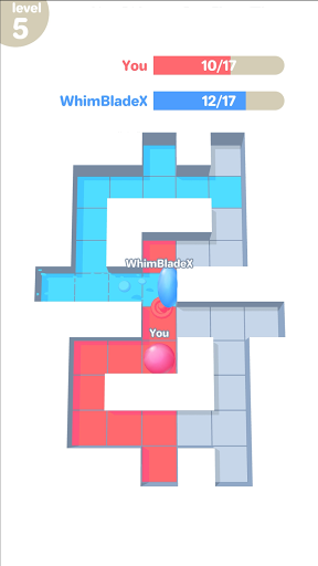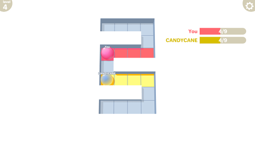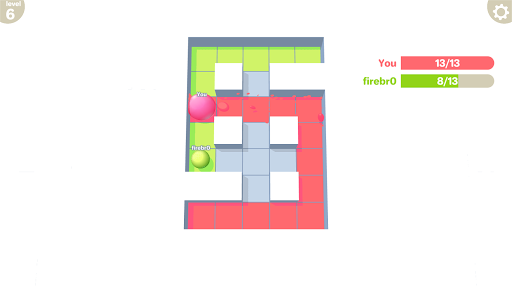 Challenge the AI to a match. Navigate the ball by swiping up, down, left and right. Color the maze faster than the opponent to win the match. Watch out for the collisions and opponents moves, as some directions can be deceiving!