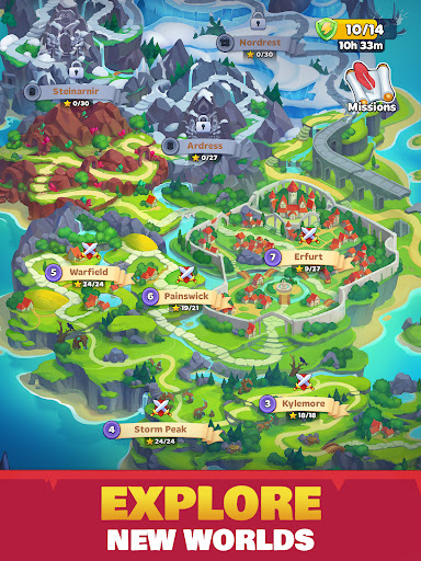 A new way to role-play with three-in-a-row puzzle battles! Collect and level up heroes, become a legend in combat, and build your own mighty kingdom.