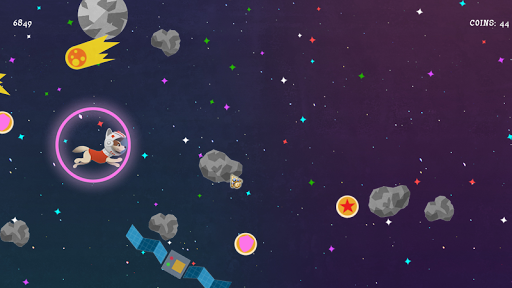 - Проведите собаку-космонавта сквозь космос, пробиваясь через астероиды и заброшенные спутники;