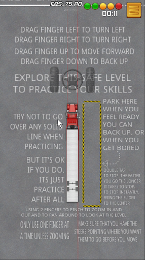 The rest of the screen in my truck practice simulator is for controlling the speed. Anywhere on the top 75% of the screen can you slide your finger up or down to move forward or reverse. If you want to stop all you have to do I double-tap anywhere on the screen and you will screech to a stop.