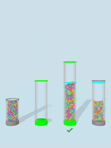 fill up the test tubes with the right amount of colorful balls