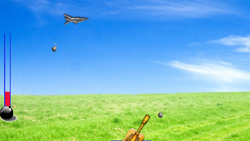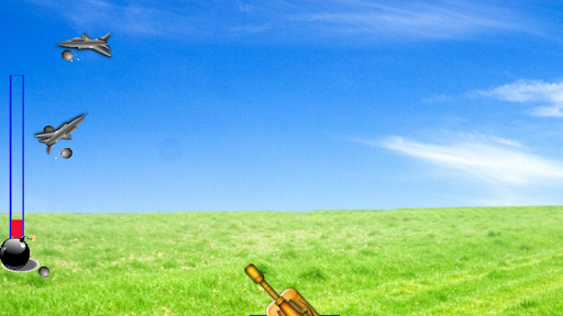 you can shoot air craft to get power. If one bomb shoot the turret, power will down amount. otherwise, turret can shoot bombs to destroy them.