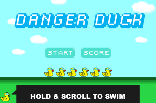 Danger Duck swim in the river at high speed everyday! Avoid the grey ducks & get coins as much as possible! Achieve high score! Control skills: 1. Hold & scroll or 2. Tap above or below Danger Duck