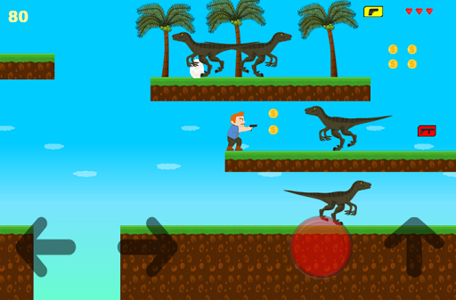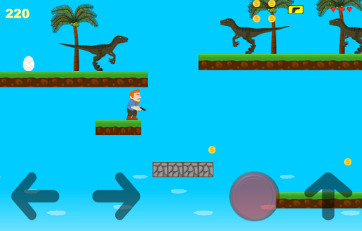 Adventurous dinosaur world with Velociraptor (Raptor) & Tyrannosaurus rex (T-Rex). Control hero to hunt dinosaur.in game world. Collect dinosaur eggs to pass all level. Enjoy.