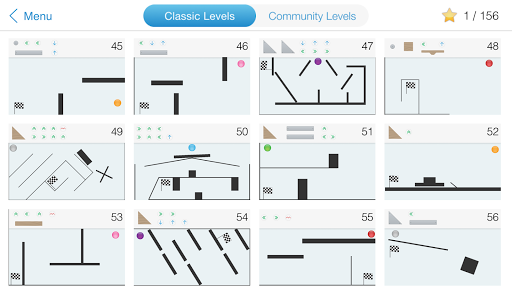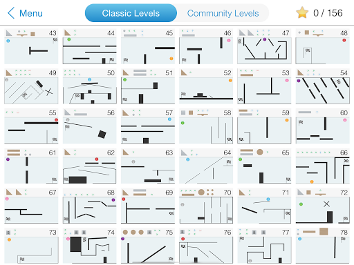 Using the pieces and powerups provided, come up with creative solutions to get the bubble to the goal! There are two types of pieces, wood and metal. Wood pieces are affected by gravity when you tap Start, while metal ones stay where you placed them. Use powerups to give the bubble speed boosts and even reverse gravity! Don't want to start at the beginning? You can skip around to your liking and jump right into the 156 exciting levels.