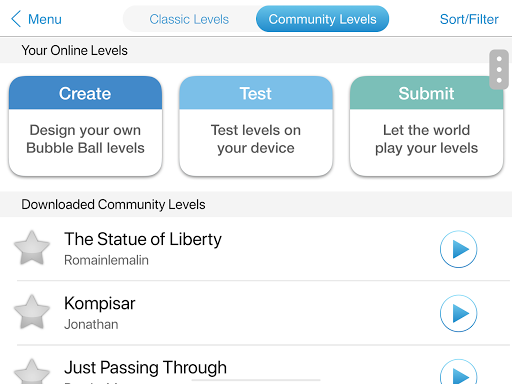 Community Levels – create your own levels for Bubble Ball, and play levels created by others! Visit naygames.com/create on your computer to start making your own levels!