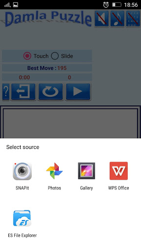 You can select some photos in game. Also you can select in your gallery, or capture from yoour camera for play.