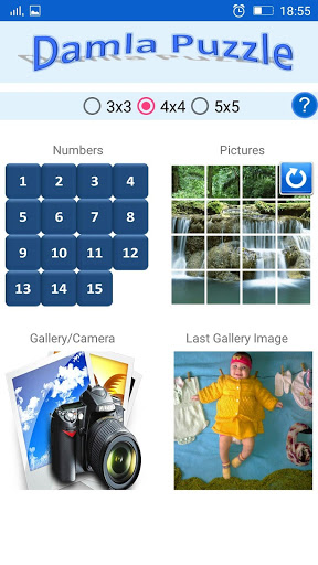 Puzle sizes are 3x3, 4x4 and 5x5.
