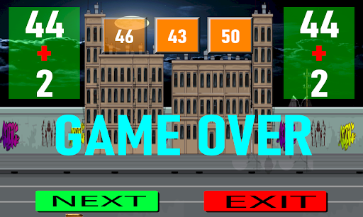 - Once the zombie attack has started, three results will appear on the screen, you must touch one of them, if you hit the correct one, you will eliminate the zombie, if you touch the wrong one, the zombie will run after you and your weapon will shoot wrong, ending the play.