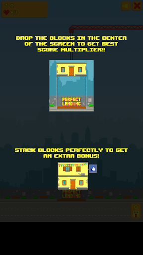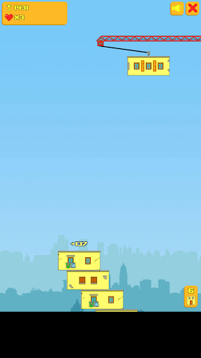 The game City Blocks is a building making game. Build high skyscrapers placing one block on the other. There are small nuances on construction of houses, it is necessary to make a skeleton of a future house block after block from the reeling crane. To beat the level you need to construct a building of a certain height. It's not that easy, because each block is suspended on a rope and swinging from side to side. The building is also swinging. Train your reflexes in this Android game. Touch the screen at the right moment to unhook the block from the rope and place it on your building adding another floor. Exactly established roof in general will provide even bigger number of points. Beautiful graphics, bonuses, new levels won’t leave you indifferent in this game.