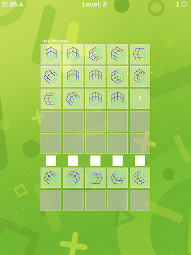 A new modern form of classic solve pattern game. Use your math or visual skills to solve patterns, find the answer. You lose a life for each wrong answer and the game ends when you have 0 life or run out of time.