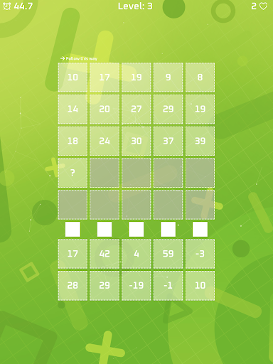 This game will help you to think faster and also is an effective way to improve your memory/logic. There are 3 types of questions in this game, 1- Math logic riddles, 2- Visual patterns, 3- Letter patterns with combined math. Both levels and questions are generated randomly, so you can play as long as you want without loop questions.