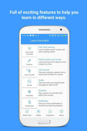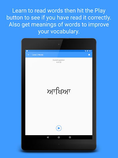 Learn Gurmukhi using various innovative methods. Learn Gurmukhi without a teacher! The app will present you with letters or sounds of letters and you need to select the correct answers. Start with Fast Track where you learn 6 letters and 5 vowels. Then start reading words using those letters and vowels. Move on to learning a line of letters at a time. Then multiple lines. Play games such as scramble to recognise letters and vowels as the game tests you. Then test your spelling with smaller words and try to read basic and harder words using the levels. Track your progress and see which letters you have to practice more. Earn certificates at Bronze, Silver, Gold and Platinum level to complete your letter and vowel learning. A great resource for individuals, families and Gurdwaras to really accelerate the learning of Gurmukhi. Add multiple players and create individual profiles of learning on one device. Finally, learn over 300 Sikhi words to get you prepared to read Gurbani. Smart Sikhi - Learn Gurmukhi is the smart way to learn in the shortest possible time!